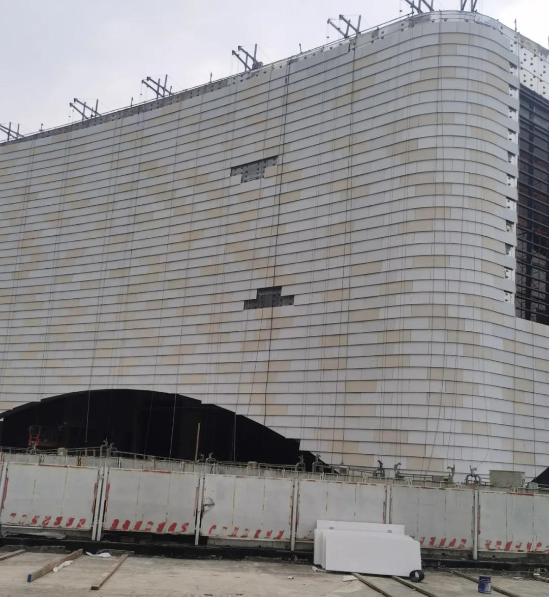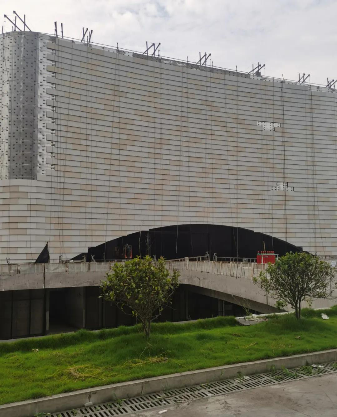 建筑外立面材料采用“砼創(chuàng)品牌”的高強(qiáng)混凝土板塊,由荔枝紋漸變淺黃色間隔拼接組成,應(yīng)用面積近18000㎡。