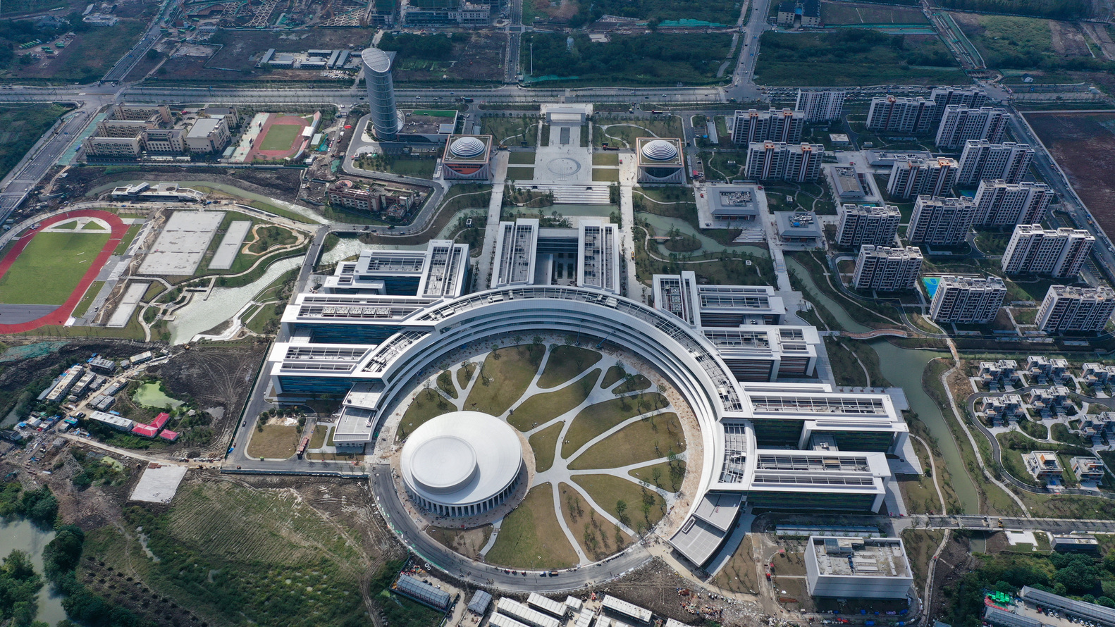 水環(huán)由多個人行道、車道相互連接的環(huán)路,水環(huán)的橋梁就像車輪上的輻條一樣,將校園和青翠的生活環(huán)連接在一起。生活環(huán)包含了學生及教職人員居住的獨立住宅樓,生活環(huán)外環(huán)區(qū)則將被商店、餐廳和體育設施圍繞,以此將西湖大學漸漸過渡、成為繁華城市肌理的一部分。