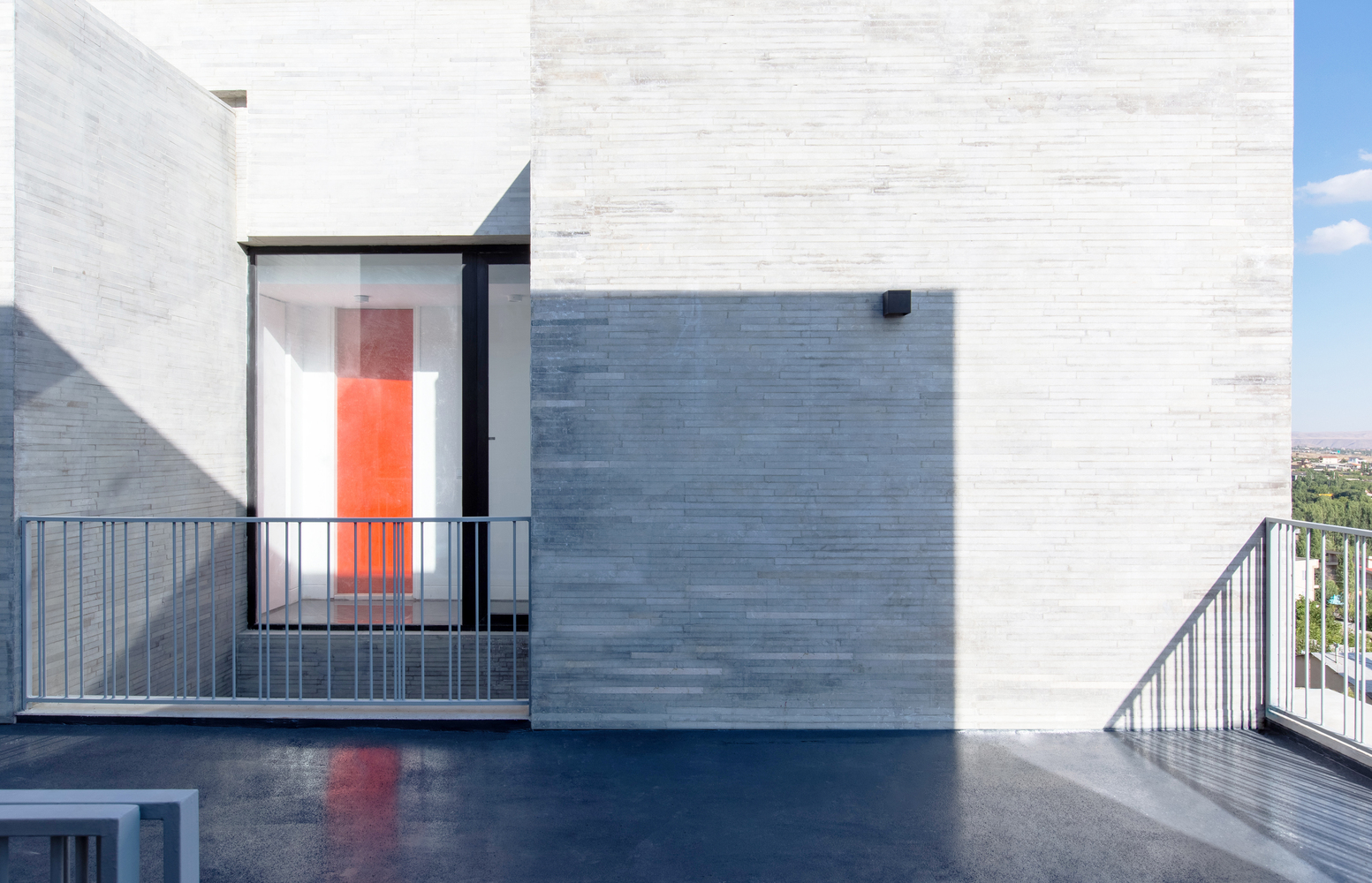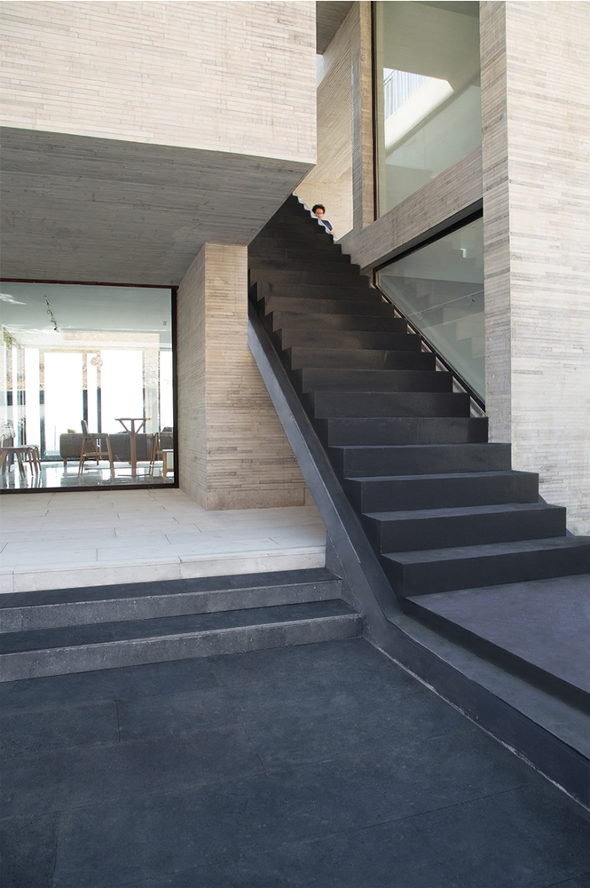 “魔方”堡建在美麗的山坡與田園之間,做舊的清水混凝土建筑與自然田園創(chuàng)新融合,形成一道靚麗的風(fēng)景線。建筑的外墻表皮呈現(xiàn)出一道道深淺不一的線條,賦予建筑神秘而又堅不可摧的“魔方”堡。