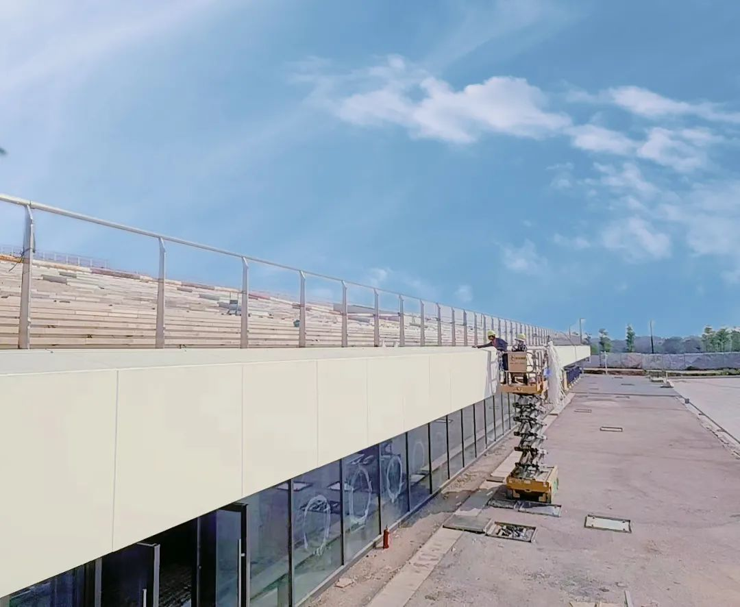 屋面檐口及走道護欄裝飾采用砼創(chuàng)生產(chǎn)的UHPC超高性能混凝土掛板,純白色清水面的UHPC板簡約并不簡單。