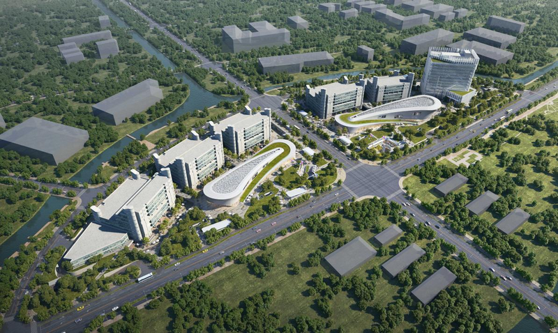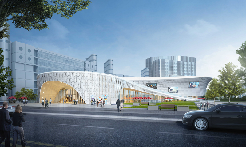 新建1號(hào)樓高度60米,外立面設(shè)計(jì)通過(guò)體積分割和交錯(cuò)形成獨(dú)特的創(chuàng)新形象,裙房則采用弧形線(xiàn)條創(chuàng)造雕塑性和富有層次感的建筑造型。同時(shí)通過(guò)增加綠化平臺(tái),讓公共綠地得以延續(xù),與公共城市空間相結(jié)合,大大提升東川路沿線(xiàn)的城市界面。