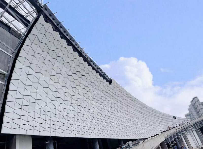 走近看,整個(gè)建筑好似披上了一層銀光閃閃的“鎧甲”。UHPC幕墻材料正如這耀眼而堅(jiān)實(shí)的“鎧甲”一樣,憑借其自身優(yōu)異的力學(xué)性能和物理性能,創(chuàng)造了一個(gè)又一個(gè)建筑奇跡。